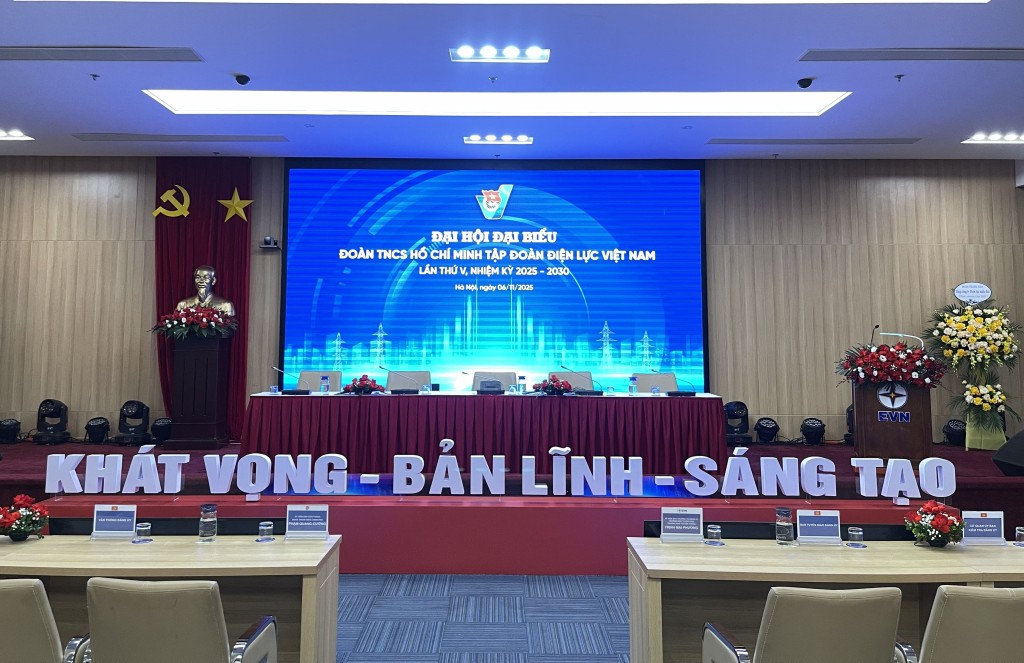 Trong 2 ngày 6–7/11/2025 tại Hà Nội, Đại hội Đoàn Thanh niên Tập đoàn Điện lực Việt Nam lần thứ V, với chủ đề “Khát vọng – Bản lĩnh – Sáng tạo”, đã diễn ra với sự tham dự của 142 đại biểu đại diện cho 26 cơ sở Đoàn trực thuộc EVN.